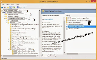 2. Now go to "Local Computer Policy" then click on "Computer Configuration" after that click on "Administrative Templates" now click on "Network" now click on "QoS Packet Scheduler". Now see the right side, you will find "Limit reservable bandwidth" option. Now double click on that.
